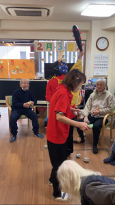 昼食後は、豆まきゲームを行いました。
